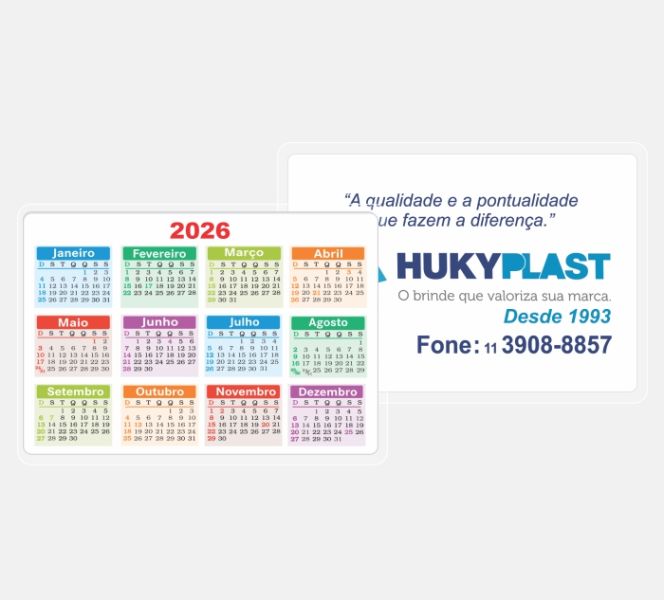 A Hukyplast oferece ano a ano pelo menos uma opção de desenho do Calendário de Bolso aos clientes. Este modelo já está pronto e tem a outra face disponível para sua publicidade.