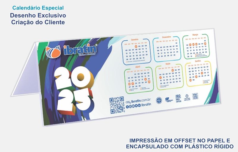 Um calendário só ficará o ano todo na mesa de seu cliente, fornecedor ou colaborador se tiver boa qualidade e durabilidade para durar o ano todo sem se deteriorar. Esse é o grande diferencial de nosso material. Nós prezamos pela qualidade e ótima aparência de nossos produtos, por isso estamos há 30 anos no mercado de brindes e materiais promocionais, com nosso processo exclusivo de fabricação.